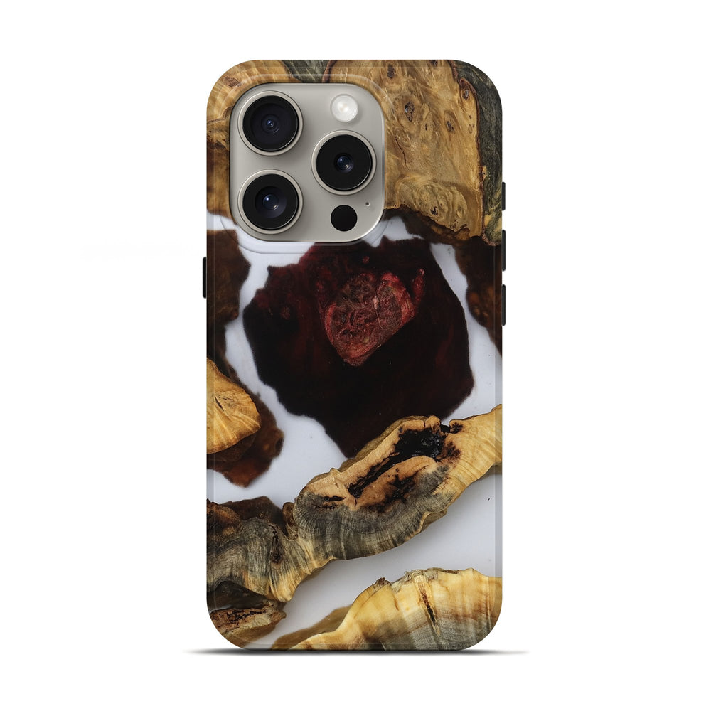 Our Live Edge cases are made from an amazing combination of stabilized wood burl and colored resin. Our stabilization process hardens the wood to protect against cracks and breaks. We do every step of the process at our shop in Northern Indiana. Perfectly fits the iPhone 16 Pro.