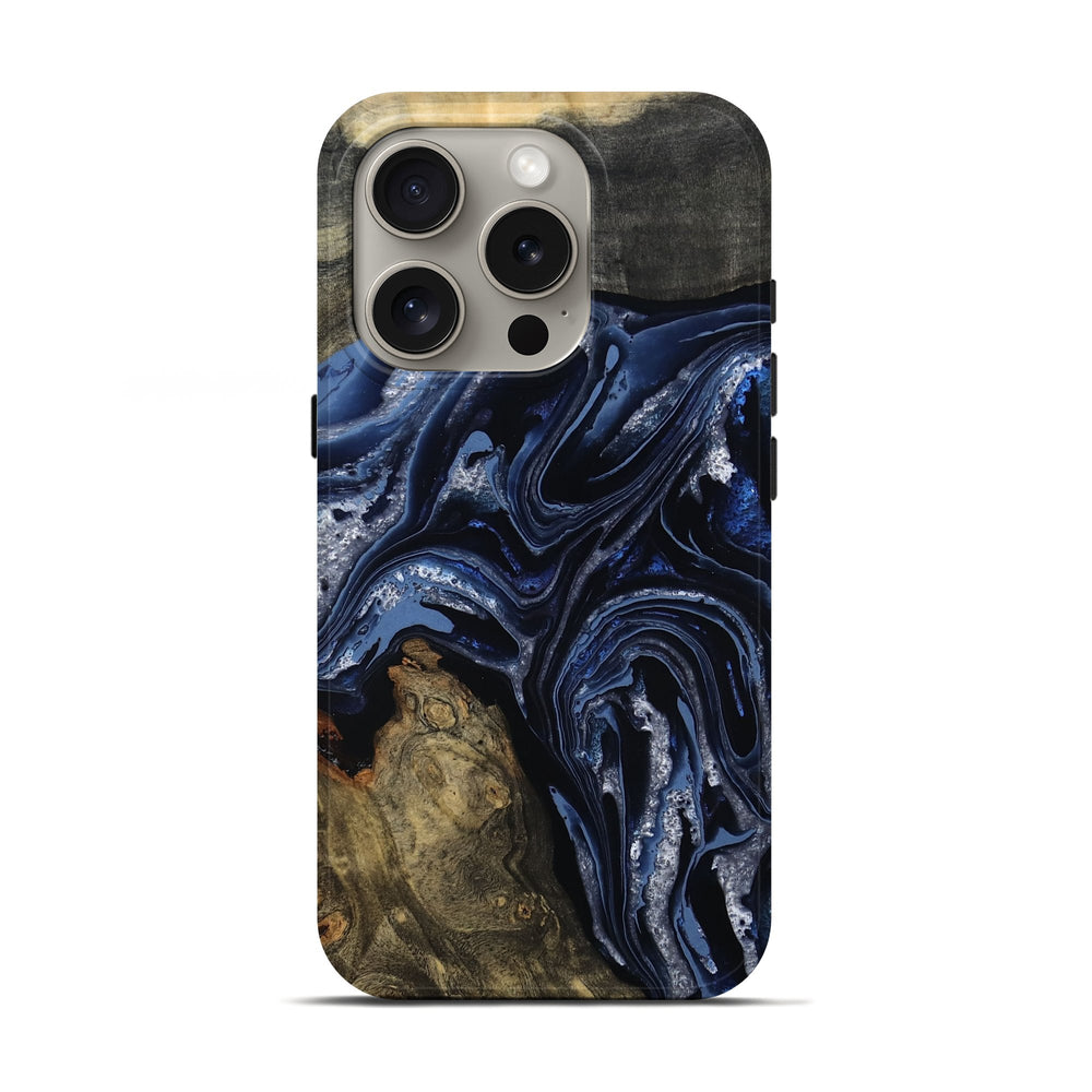 Our Live Edge cases are made from an amazing combination of stabilized wood burl and colored resin. Our stabilization process hardens the wood to protect against cracks and breaks. We do every step of the process at our shop in Northern Indiana. Perfectly fits the iPhone 16 Pro.