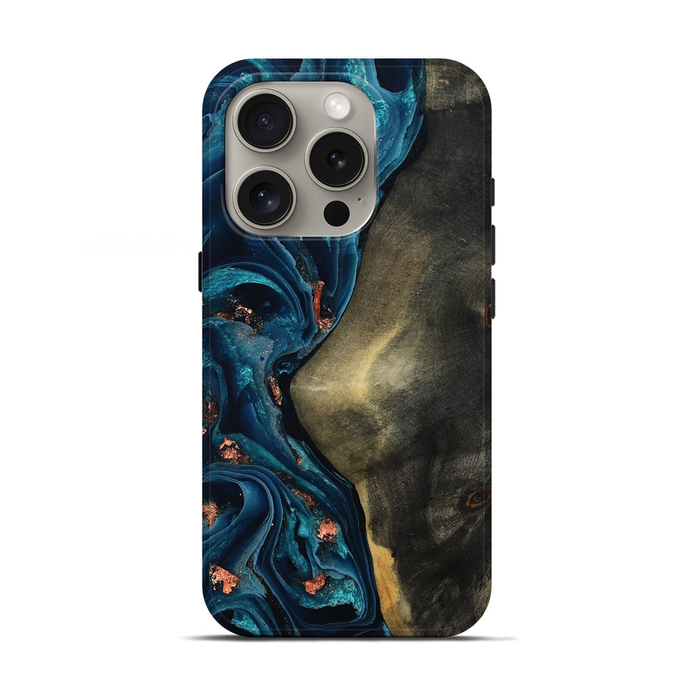 Our Live Edge cases are made from an amazing combination of stabilized wood burl and colored resin. Our stabilization process hardens the wood to protect against cracks and breaks. We do every step of the process at our shop in Northern Indiana. Perfectly fits the iPhone 16 Pro.