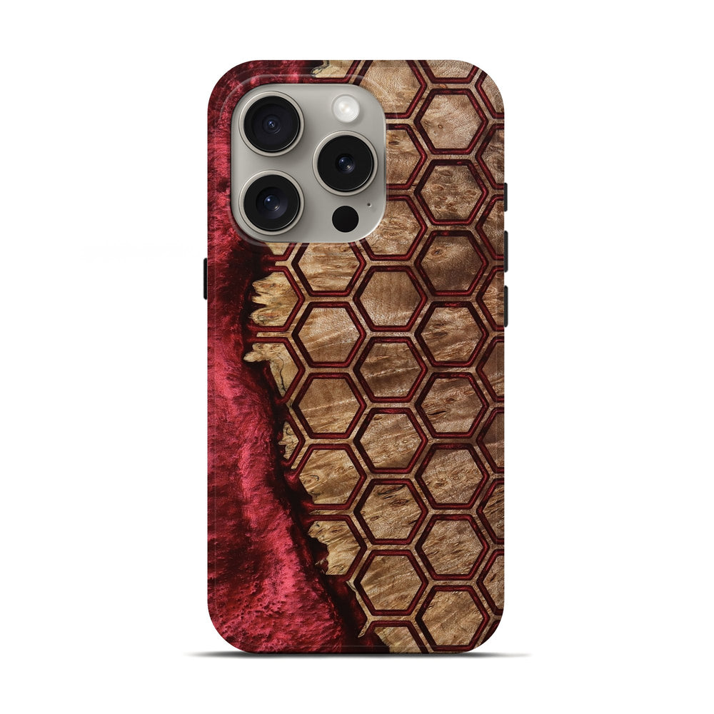 Our Live Edge cases are made from an amazing combination of stabilized wood burl and colored resin. Our stabilization process hardens the wood to protect against cracks and breaks. We do every step of the process at our shop in Northern Indiana. Perfectly fits the iPhone 16 Pro.