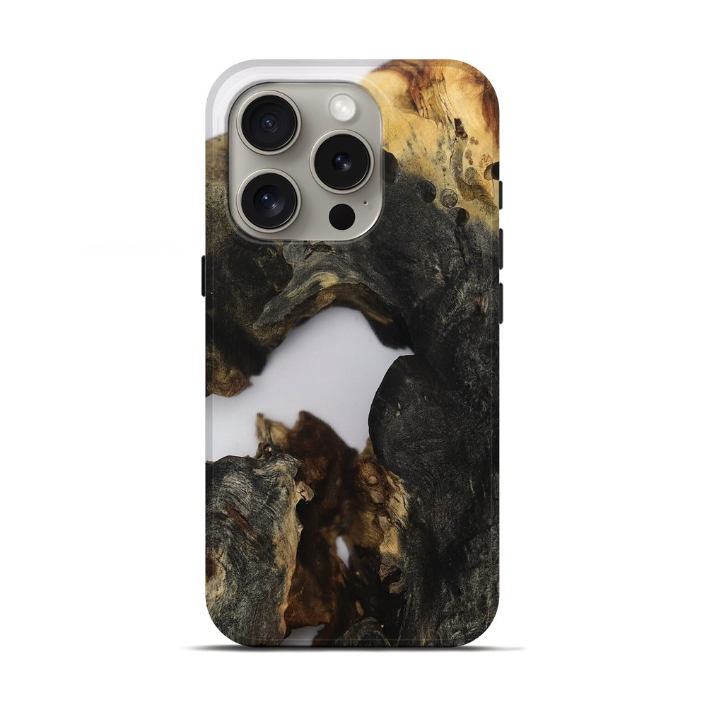 Our Live Edge cases are made from an amazing combination of stabilized wood burl and colored resin. Our stabilization process hardens the wood to protect against cracks and breaks. We do every step of the process at our shop in Northern Indiana. Perfectly fits the iPhone 16 Pro.