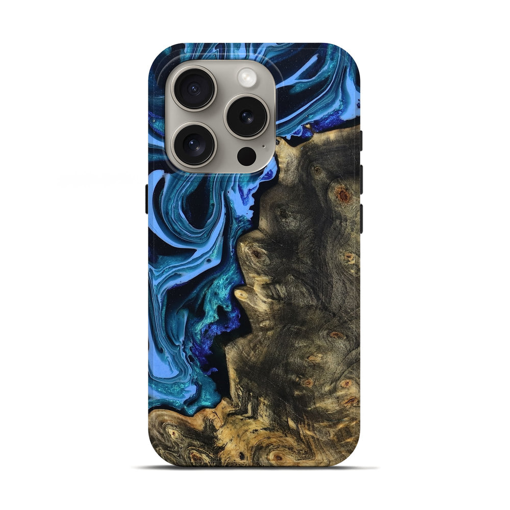 Our Live Edge cases are made from an amazing combination of stabilized wood burl and colored resin. Our stabilization process hardens the wood to protect against cracks and breaks. We do every step of the process at our shop in Northern Indiana. Perfectly fits the iPhone 16 Pro.