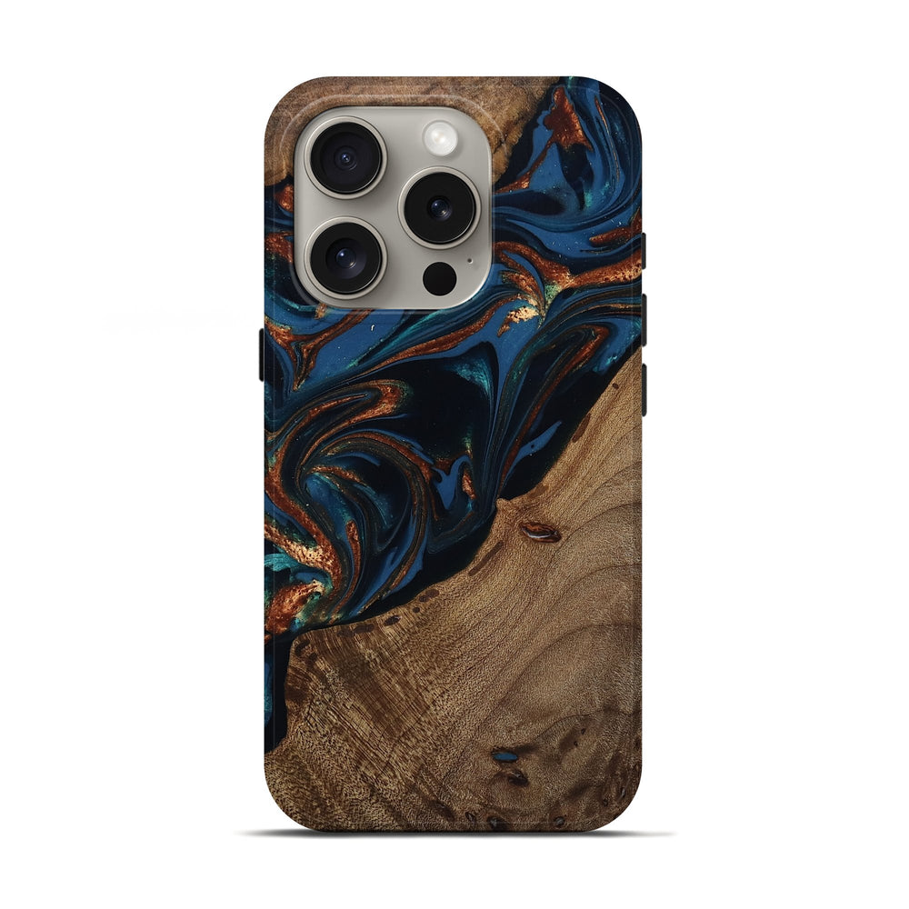 Our Live Edge cases are made from an amazing combination of stabilized wood burl and colored resin. Our stabilization process hardens the wood to protect against cracks and breaks. We do every step of the process at our shop in Northern Indiana. Perfectly fits the iPhone 16 Pro.