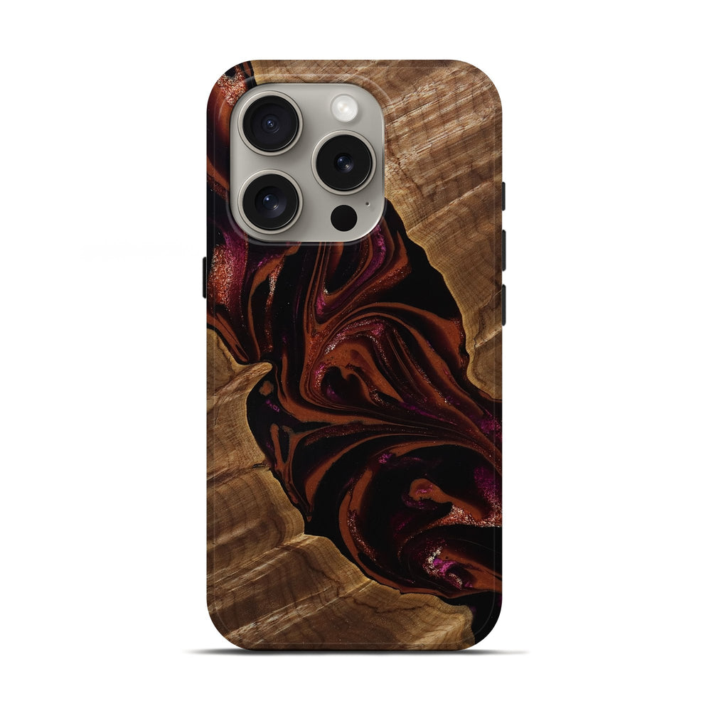 Our Live Edge cases are made from an amazing combination of stabilized wood burl and colored resin. Our stabilization process hardens the wood to protect against cracks and breaks. We do every step of the process at our shop in Northern Indiana. Perfectly fits the iPhone 16 Pro.