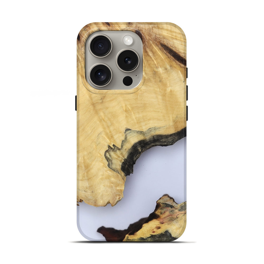 Our Live Edge cases are made from an amazing combination of stabilized wood burl and colored resin. Our stabilization process hardens the wood to protect against cracks and breaks. We do every step of the process at our shop in Northern Indiana. Perfectly fits the iPhone 16 Pro.