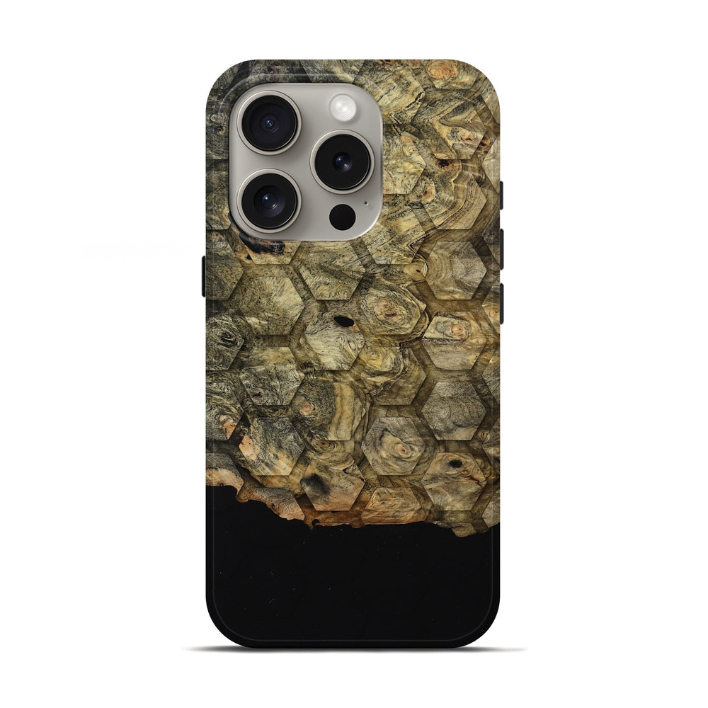 Our Live Edge cases are made from an amazing combination of stabilized wood burl and colored resin. Our stabilization process hardens the wood to protect against cracks and breaks. We do every step of the process at our shop in Northern Indiana. Perfectly fits the iPhone 16 Pro.