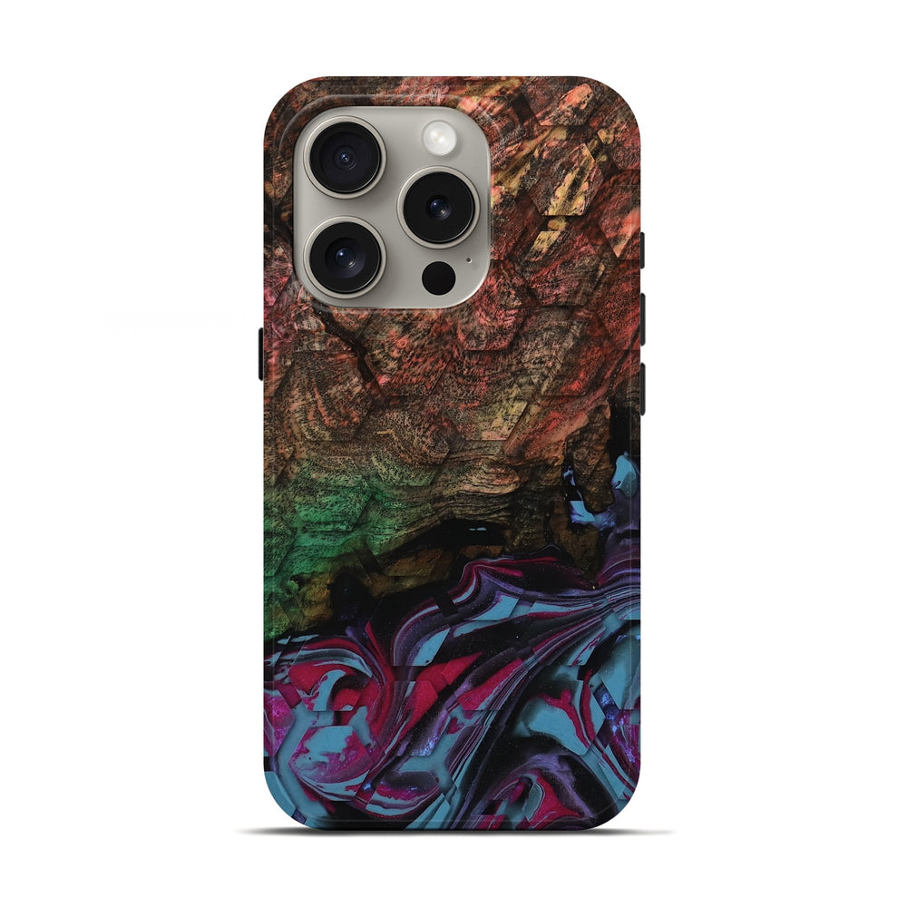 Our Live Edge cases are made from an amazing combination of stabilized wood burl and colored resin. Our stabilization process hardens the wood to protect against cracks and breaks. We do every step of the process at our shop in Northern Indiana. Perfectly fits the iPhone 16 Pro.