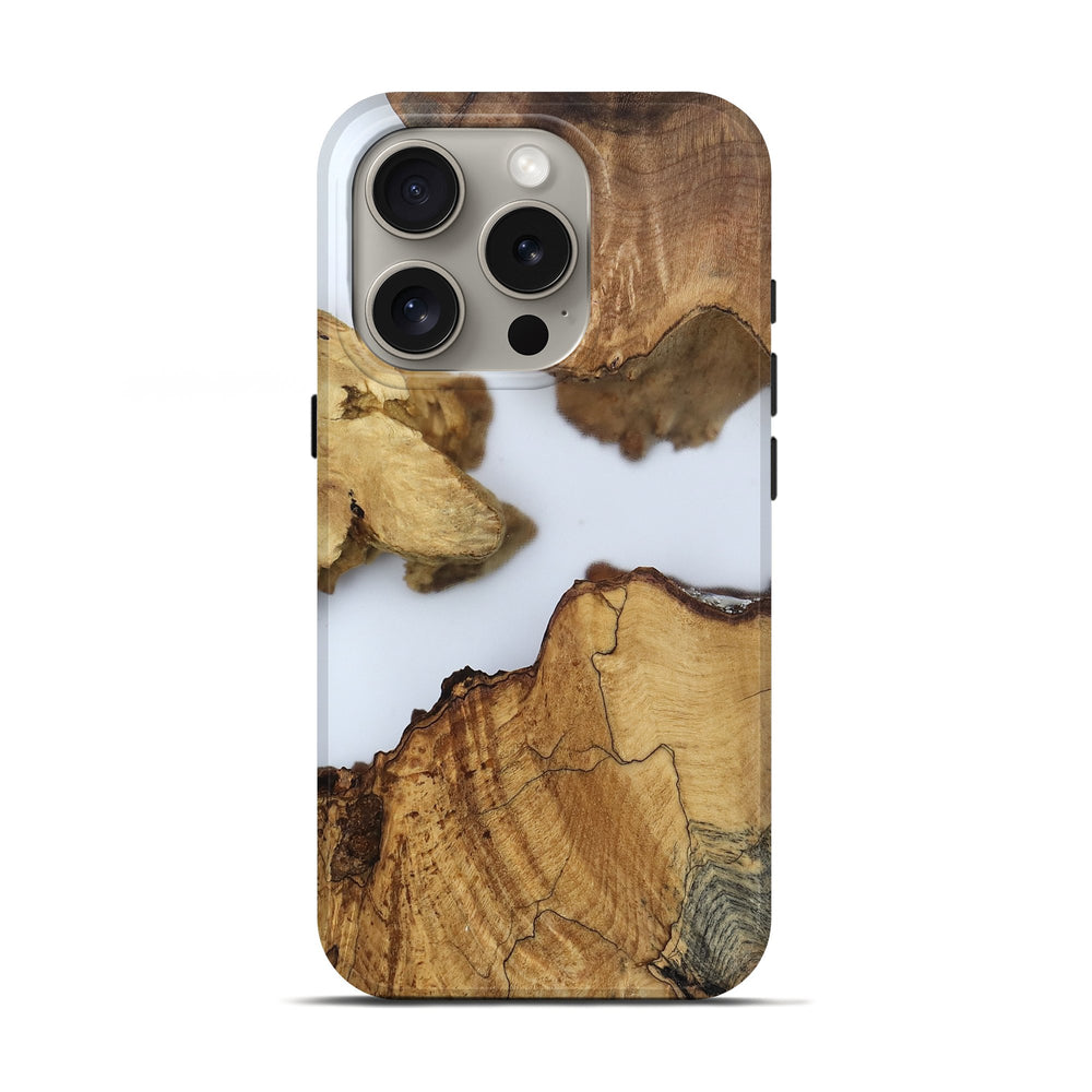 Our Live Edge cases are made from an amazing combination of stabilized wood burl and colored resin. Our stabilization process hardens the wood to protect against cracks and breaks. We do every step of the process at our shop in Northern Indiana. Perfectly fits the iPhone 16 Pro.