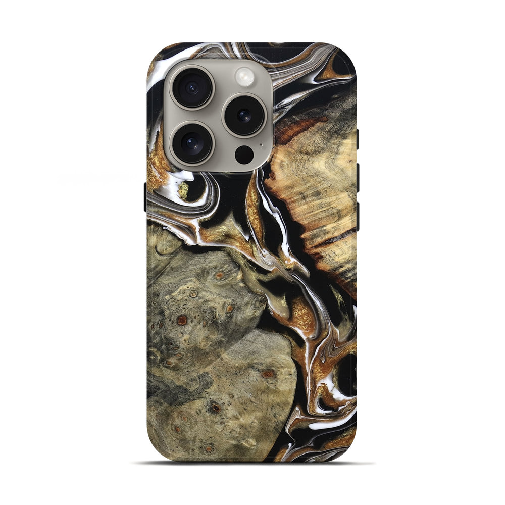 Our Live Edge cases are made from an amazing combination of stabilized wood burl and colored resin. Our stabilization process hardens the wood to protect against cracks and breaks. We do every step of the process at our shop in Northern Indiana. Perfectly fits the iPhone 16 Pro.