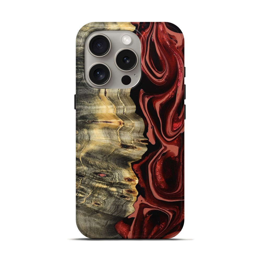 Our Live Edge cases are made from an amazing combination of stabilized wood burl and colored resin. Our stabilization process hardens the wood to protect against cracks and breaks. We do every step of the process at our shop in Northern Indiana. Perfectly fits the iPhone 16 Pro.