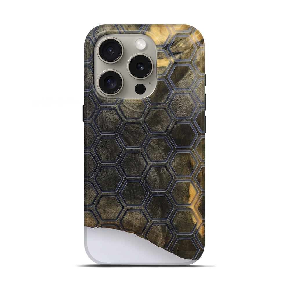 Our Live Edge cases are made from an amazing combination of stabilized wood burl and colored resin. Our stabilization process hardens the wood to protect against cracks and breaks. We do every step of the process at our shop in Northern Indiana. Perfectly fits the iPhone 16 Pro.