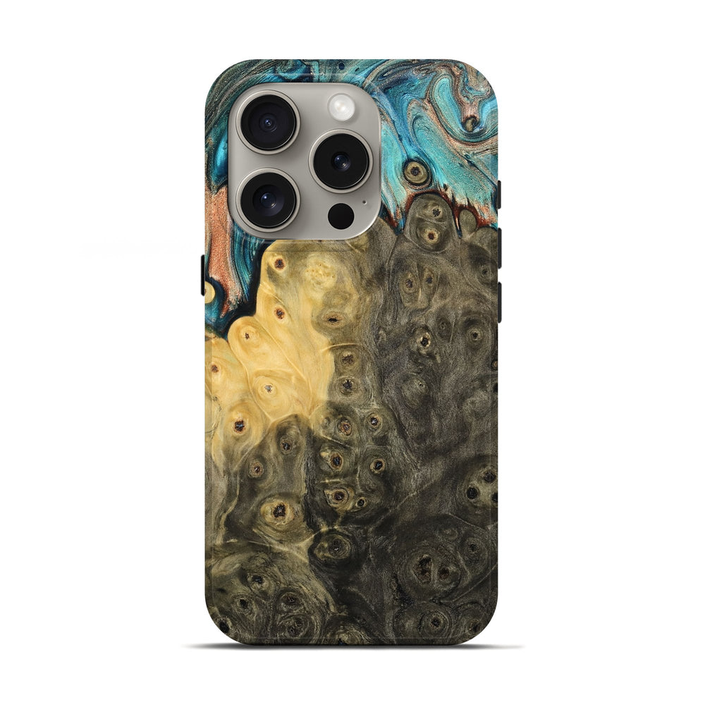 Our Live Edge cases are made from an amazing combination of stabilized wood burl and colored resin. Our stabilization process hardens the wood to protect against cracks and breaks. We do every step of the process at our shop in Northern Indiana. Perfectly fits the iPhone 16 Pro.