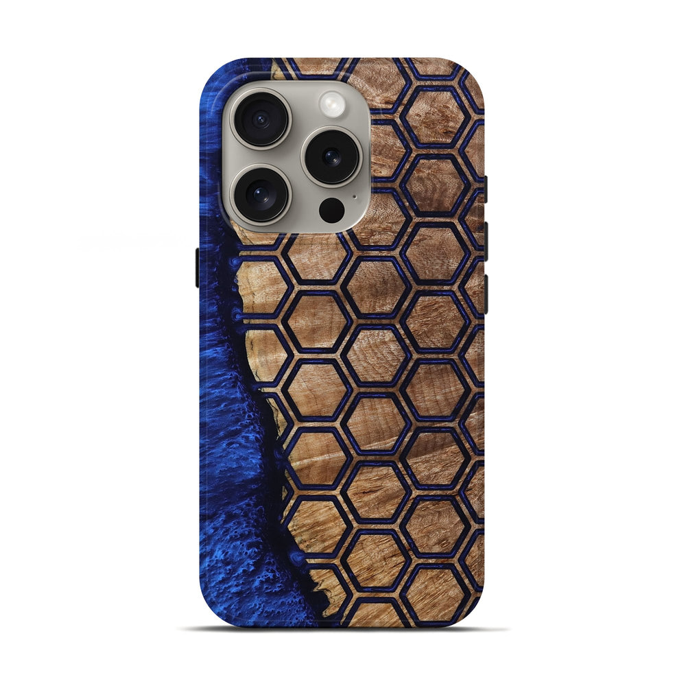 Our Live Edge cases are made from an amazing combination of stabilized wood burl and colored resin. Our stabilization process hardens the wood to protect against cracks and breaks. We do every step of the process at our shop in Northern Indiana. Perfectly fits the iPhone 16 Pro.