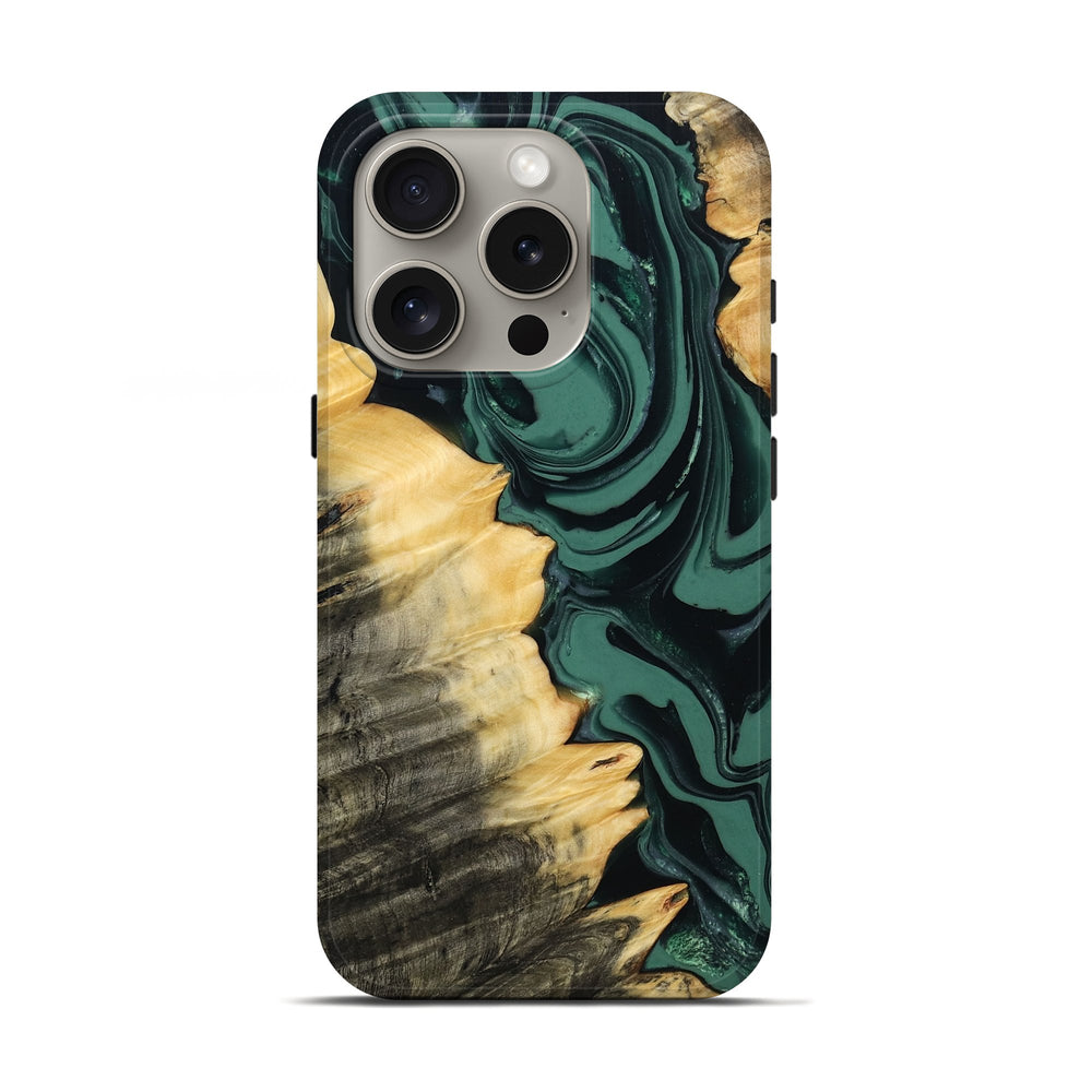 Our Live Edge cases are made from an amazing combination of stabilized wood burl and colored resin. Our stabilization process hardens the wood to protect against cracks and breaks. We do every step of the process at our shop in Northern Indiana. Perfectly fits the iPhone 16 Pro.