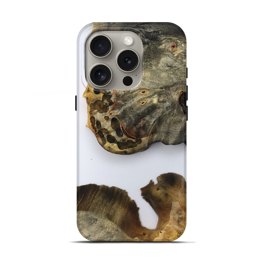 Our Live Edge cases are made from an amazing combination of stabilized wood burl and colored resin. Our stabilization process hardens the wood to protect against cracks and breaks. We do every step of the process at our shop in Northern Indiana. Perfectly fits the iPhone 16 Pro.