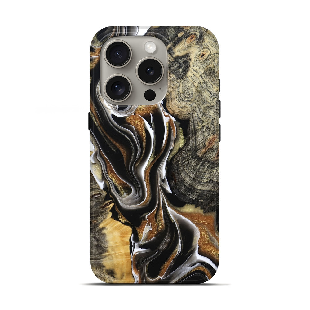 Our Live Edge cases are made from an amazing combination of stabilized wood burl and colored resin. Our stabilization process hardens the wood to protect against cracks and breaks. We do every step of the process at our shop in Northern Indiana. Perfectly fits the iPhone 16 Pro.