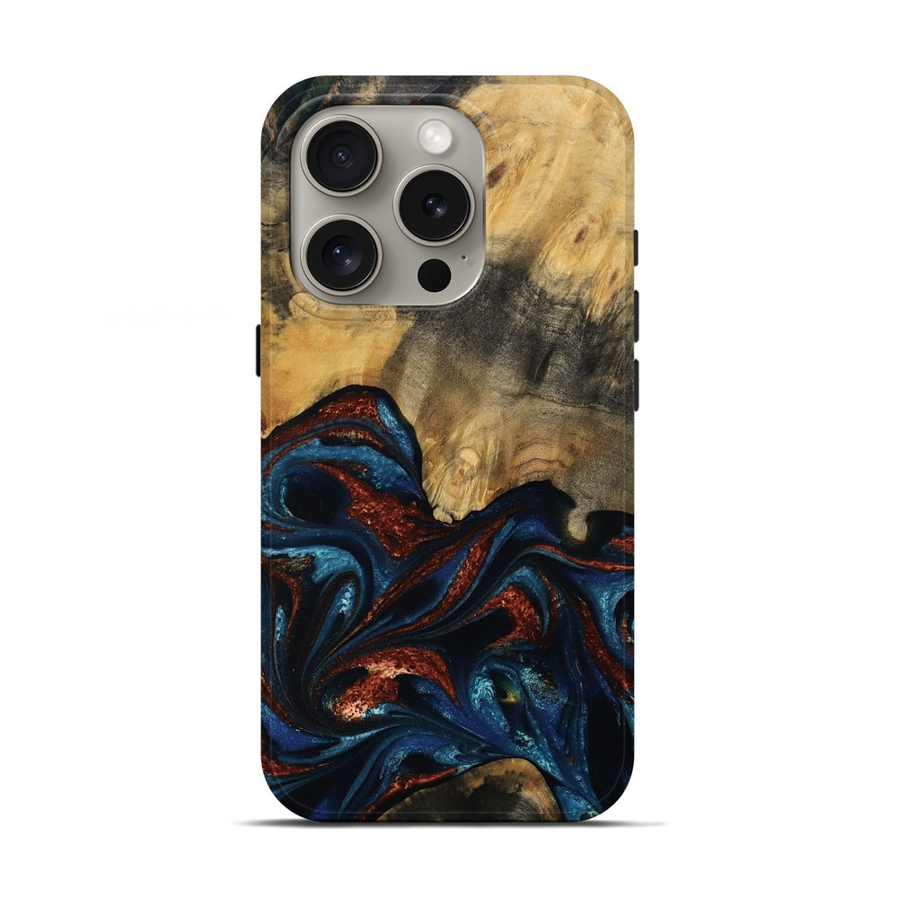 Our Live Edge cases are made from an amazing combination of stabilized wood burl and colored resin. Our stabilization process hardens the wood to protect against cracks and breaks. We do every step of the process at our shop in Northern Indiana. Perfectly fits the iPhone 16 Pro.