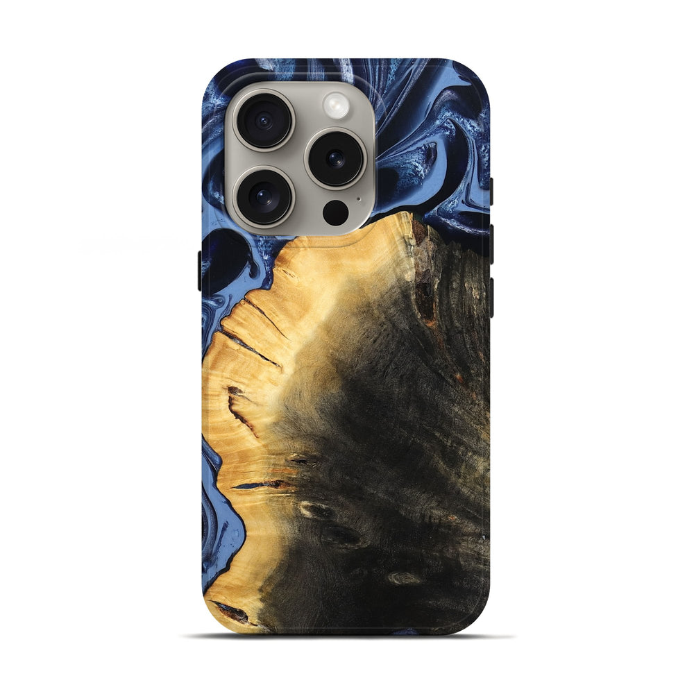 Our Live Edge cases are made from an amazing combination of stabilized wood burl and colored resin. Our stabilization process hardens the wood to protect against cracks and breaks. We do every step of the process at our shop in Northern Indiana. Perfectly fits the iPhone 16 Pro.