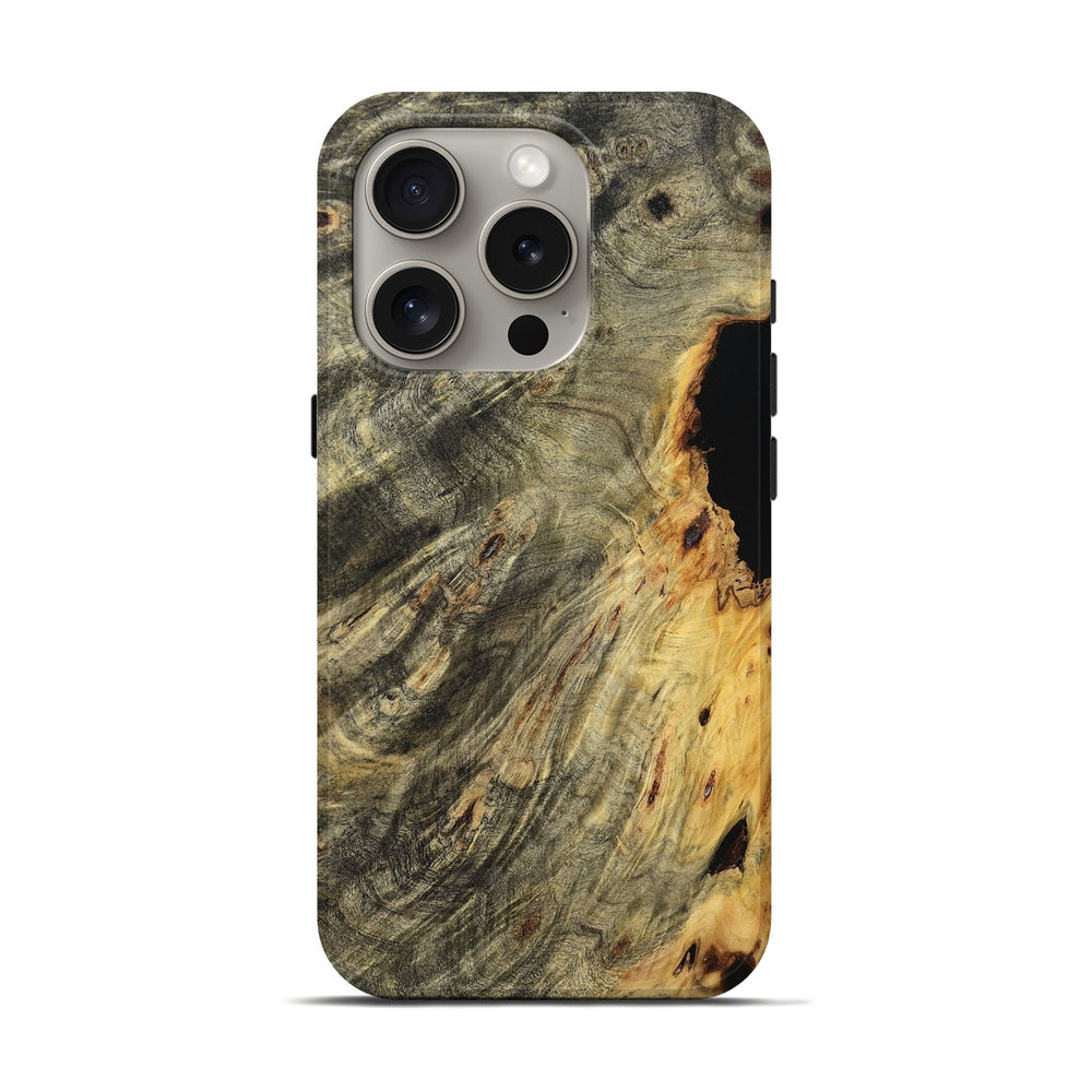 Our Live Edge cases are made from an amazing combination of stabilized wood burl and colored resin. Our stabilization process hardens the wood to protect against cracks and breaks. We do every step of the process at our shop in Northern Indiana. Perfectly fits the iPhone 16 Pro.