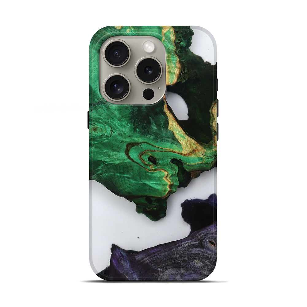 Our Live Edge cases are made from an amazing combination of stabilized wood burl and colored resin. Our stabilization process hardens the wood to protect against cracks and breaks. We do every step of the process at our shop in Northern Indiana. Perfectly fits the iPhone 16 Pro.
