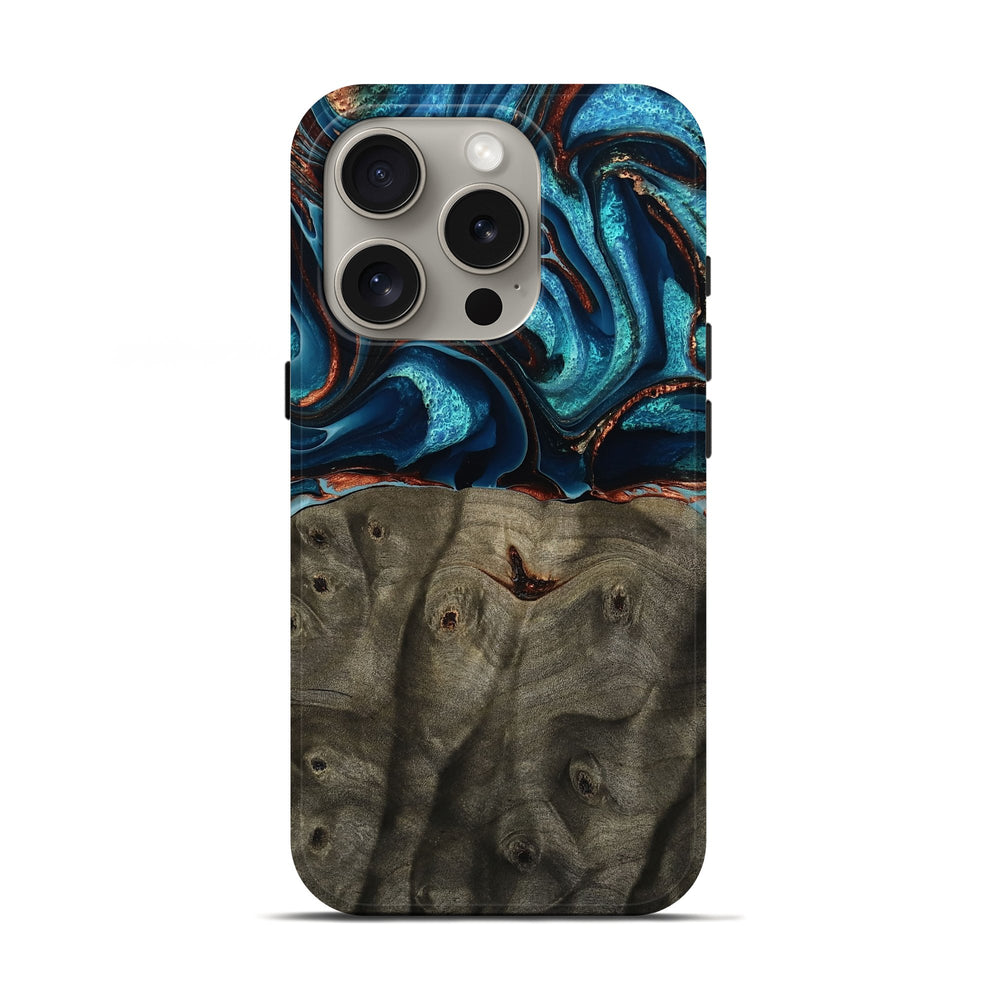 Our Live Edge cases are made from an amazing combination of stabilized wood burl and colored resin. Our stabilization process hardens the wood to protect against cracks and breaks. We do every step of the process at our shop in Northern Indiana. Perfectly fits the iPhone 16 Pro.