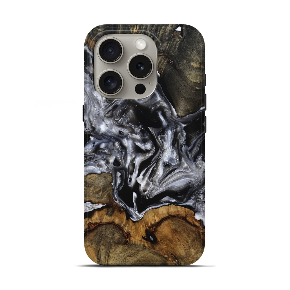 Our Live Edge cases are made from an amazing combination of stabilized wood burl and colored resin. Our stabilization process hardens the wood to protect against cracks and breaks. We do every step of the process at our shop in Northern Indiana. Perfectly fits the iPhone 16 Pro.