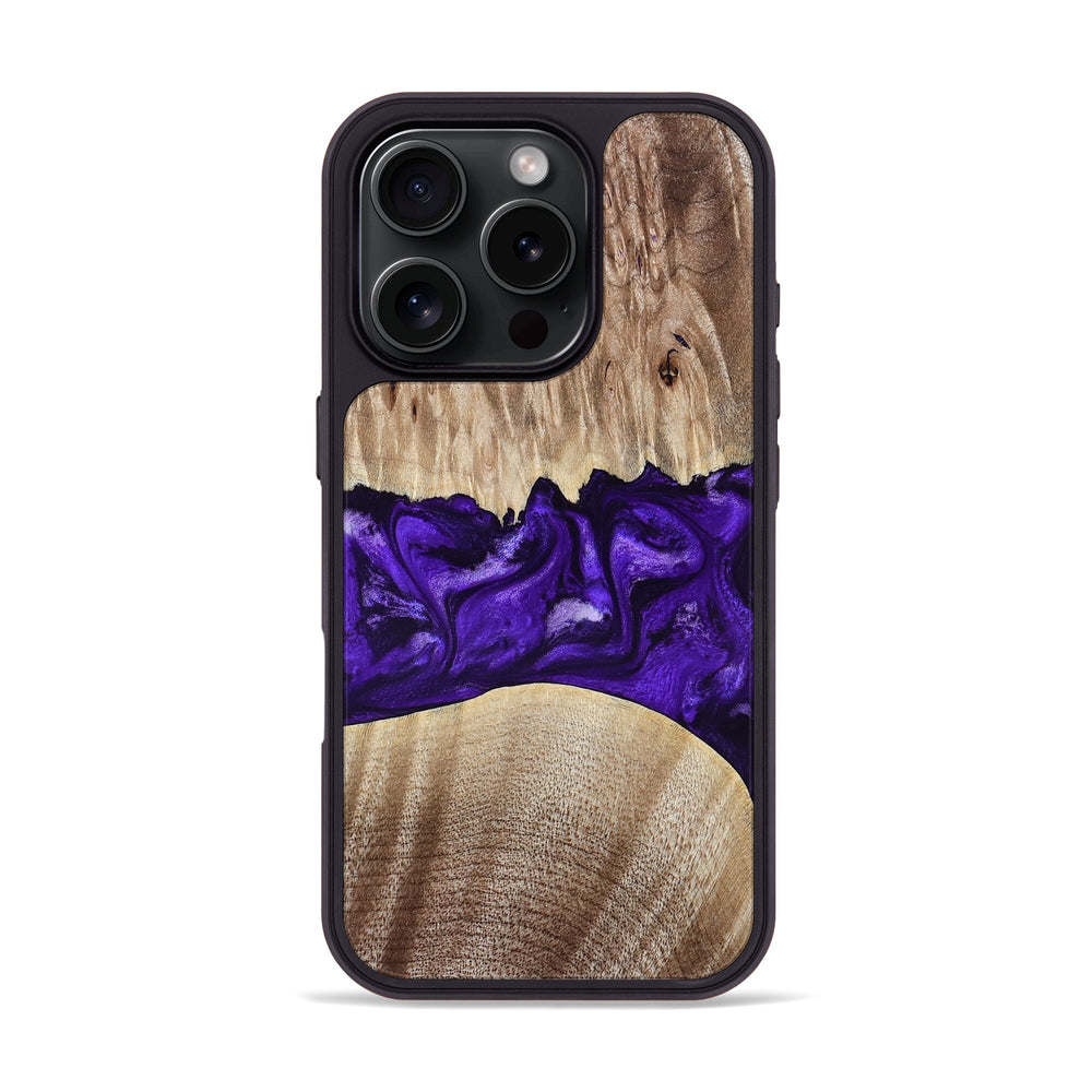 Kameron has a smooth, light maple wood surface with beautiful grain patterns. It features a striking contrast of deep purple that flows elegantly across the wood.