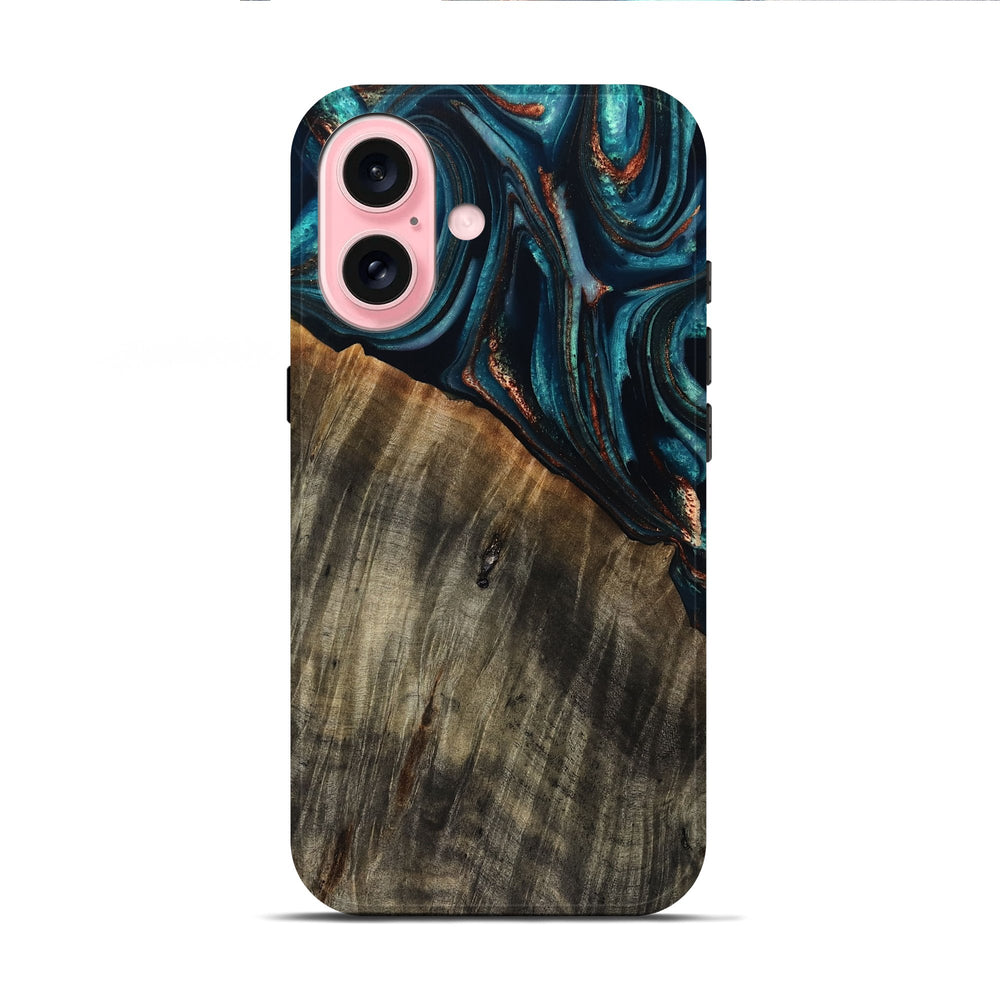 Our Live Edge cases are made from an amazing combination of stabilized wood burl and colored resin. Our stabilization process hardens the wood to protect against cracks and breaks. We do every step of the process at our shop in Northern Indiana. Perfectly fits the iPhone 16.