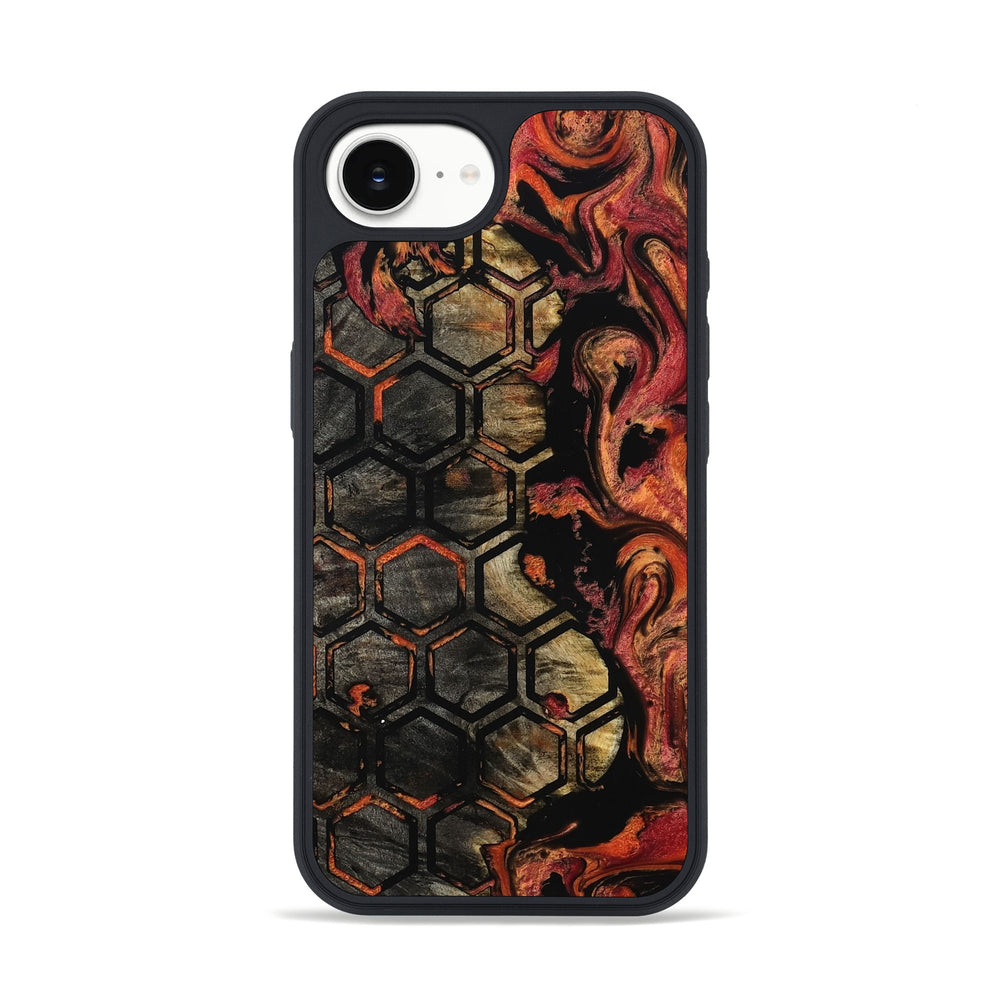 Aaden has warm tones of red and gold flowing around a pattern of hexagons. Its unique design blends natural wood with dynamic colors for an eye-catching look.
