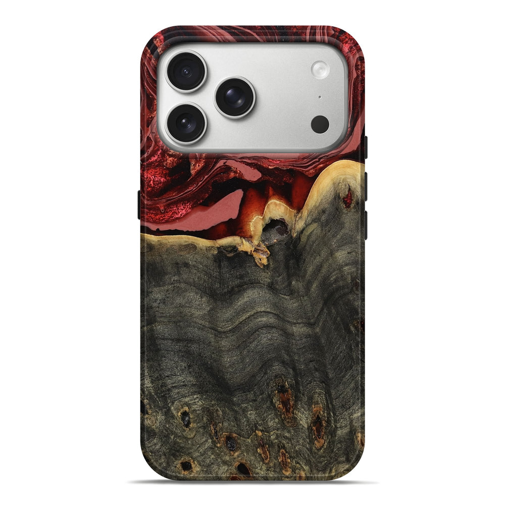 Our Live Edge cases are made from an amazing combination of stabilized wood burl and colored resin. Our stabilization process hardens the wood to protect against cracks and breaks. We do every step of the process at our shop in Northern Indiana. Perfectly fits the iPhone 17 Pro Max.