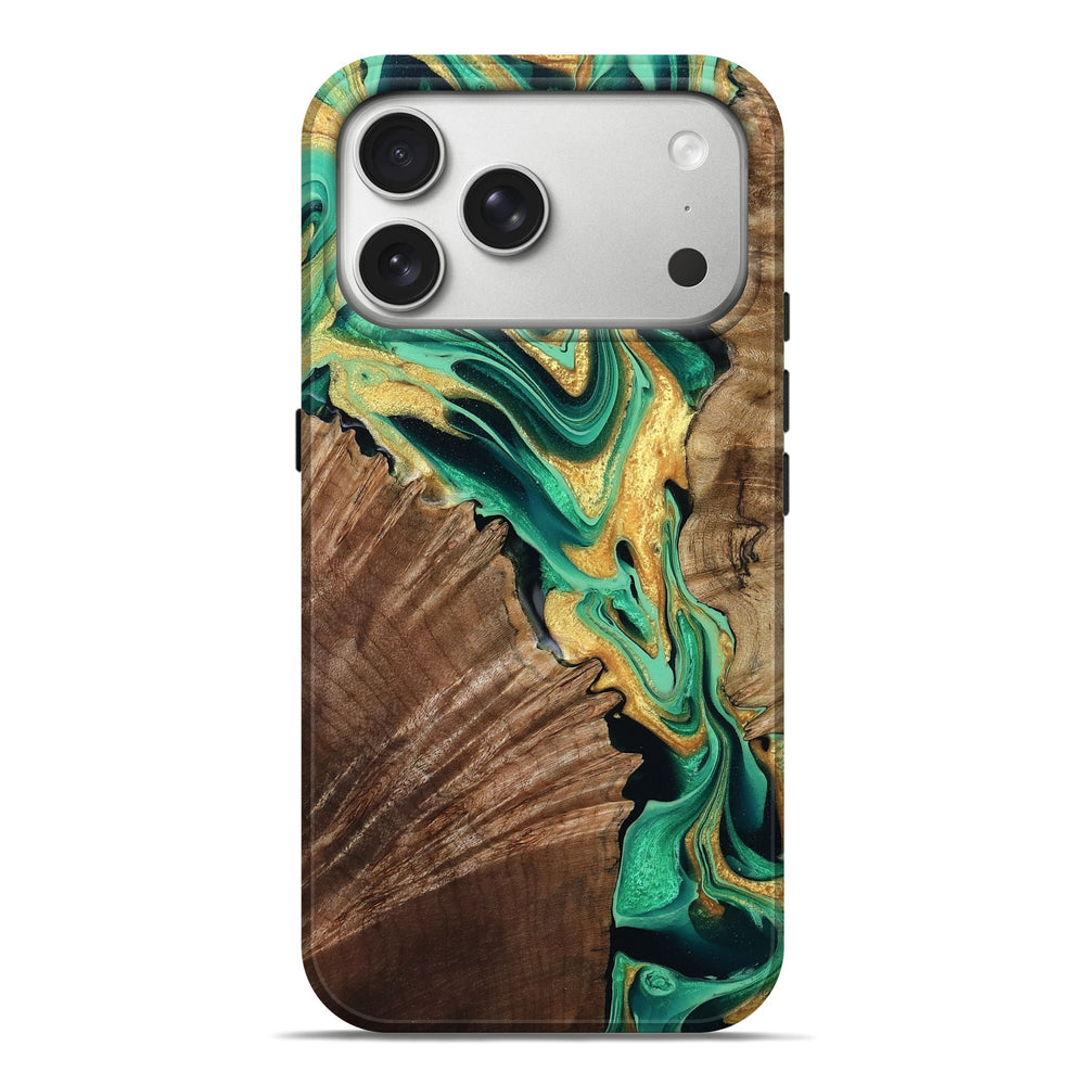 Our Live Edge cases are made from an amazing combination of stabilized wood burl and colored resin. Our stabilization process hardens the wood to protect against cracks and breaks. We do every step of the process at our shop in Northern Indiana. Perfectly fits the iPhone 17 Pro Max.