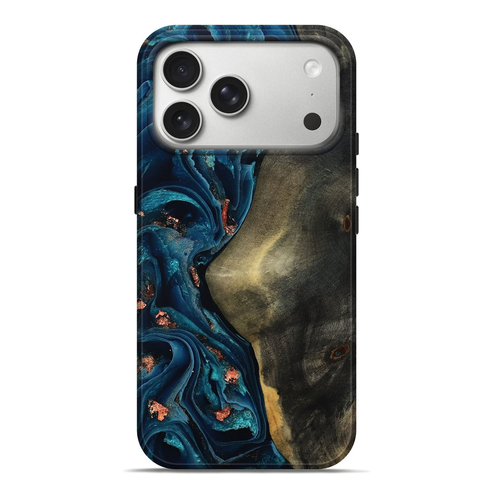 Our Live Edge cases are made from an amazing combination of stabilized wood burl and colored resin. Our stabilization process hardens the wood to protect against cracks and breaks. We do every step of the process at our shop in Northern Indiana. Perfectly fits the iPhone 17 Pro Max.