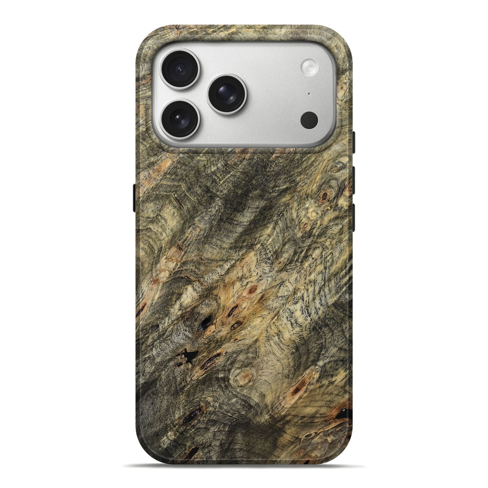 Our Live Edge cases are made from an amazing combination of stabilized wood burl and colored resin. Our stabilization process hardens the wood to protect against cracks and breaks. We do every step of the process at our shop in Northern Indiana. Perfectly fits the iPhone 17 Pro Max.