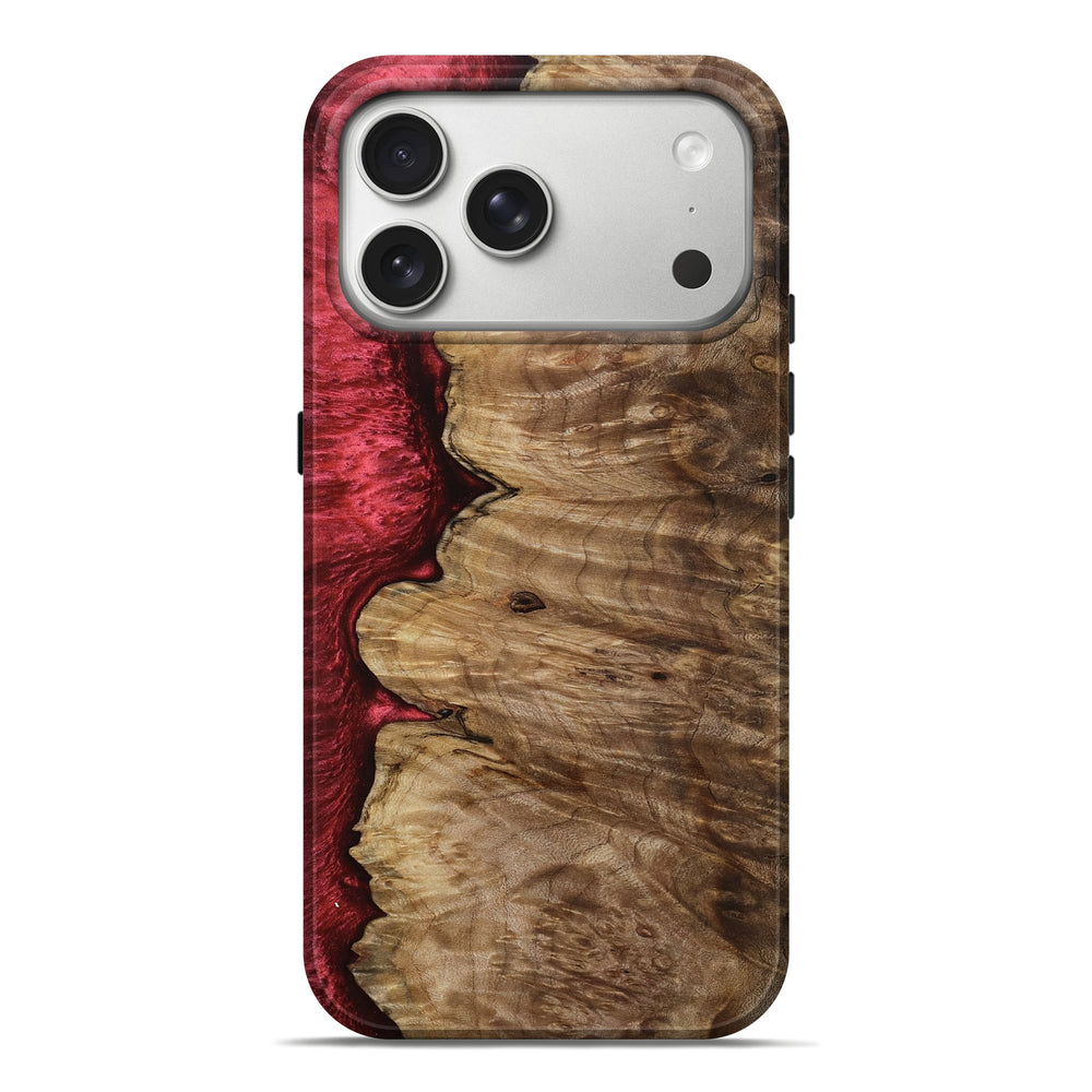 Our Live Edge cases are made from an amazing combination of stabilized wood burl and colored resin. Our stabilization process hardens the wood to protect against cracks and breaks. We do every step of the process at our shop in Northern Indiana. Perfectly fits the iPhone 17 Pro Max.