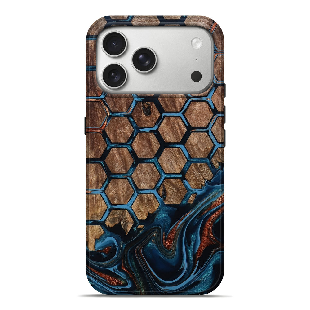 Our Live Edge cases are made from an amazing combination of stabilized wood burl and colored resin. Our stabilization process hardens the wood to protect against cracks and breaks. We do every step of the process at our shop in Northern Indiana. Perfectly fits the iPhone 17 Pro Max.