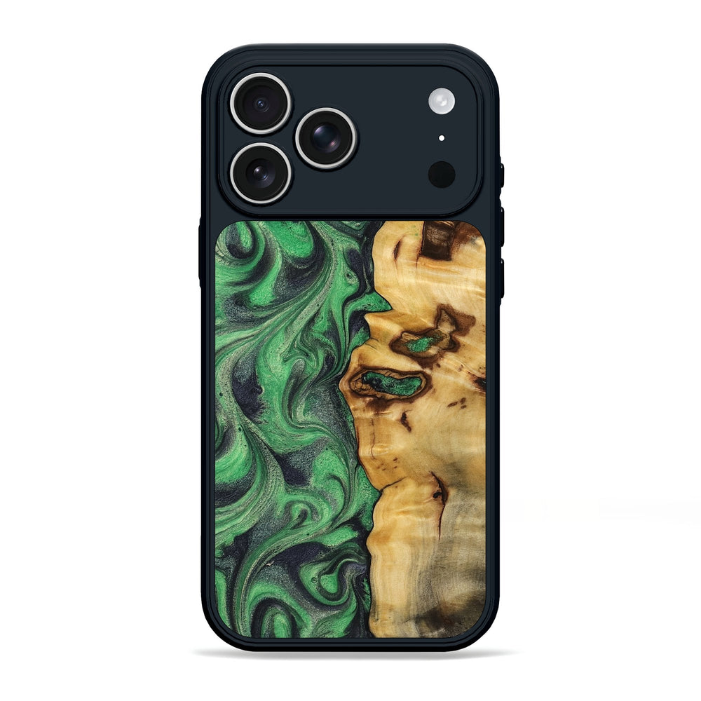 Kevin has beautiful swirls of deep green and dark tones around rich, warm wood. The intricate patterns and flow give it a unique, natural look.