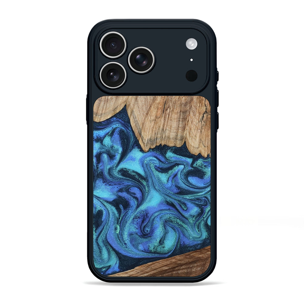 Leslie is a striking maple wood piece with smooth, flowing patterns in shades of blue and teal. Its natural grains complement the vibrant colors, creating a soothing visual harmony.