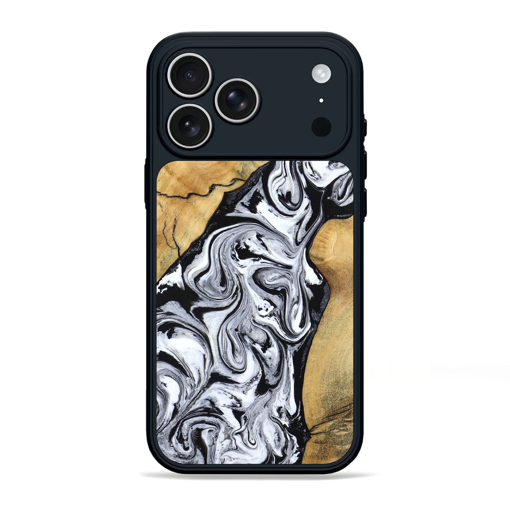 Sydnie has beautiful, swirling patterns in black and white that flow gracefully across its surface. The warm tones of the Buckeye wood create a lovely contrast, highlighting its natural beauty.
