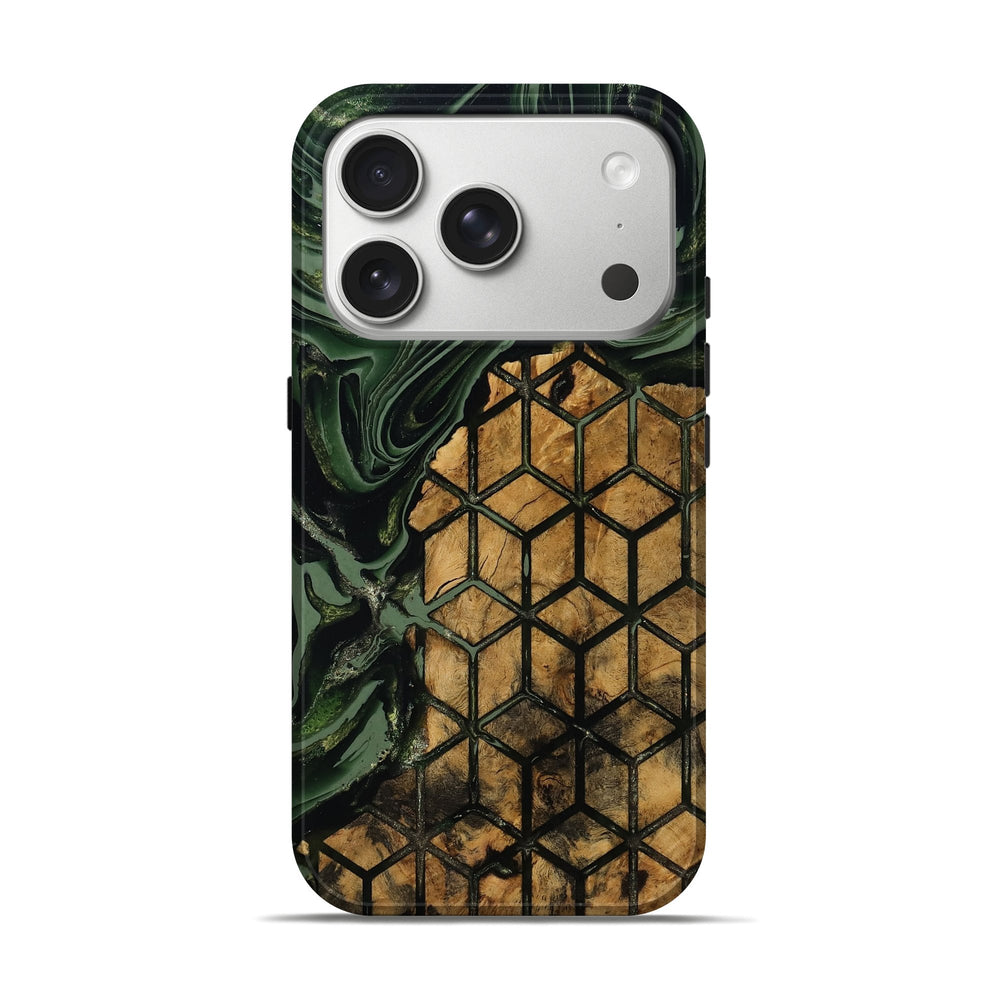 Our Live Edge cases are made from an amazing combination of stabilized wood burl and colored resin. Our stabilization process hardens the wood to protect against cracks and breaks. We do every step of the process at our shop in Northern Indiana. Perfectly fits the iPhone 17 Pro.