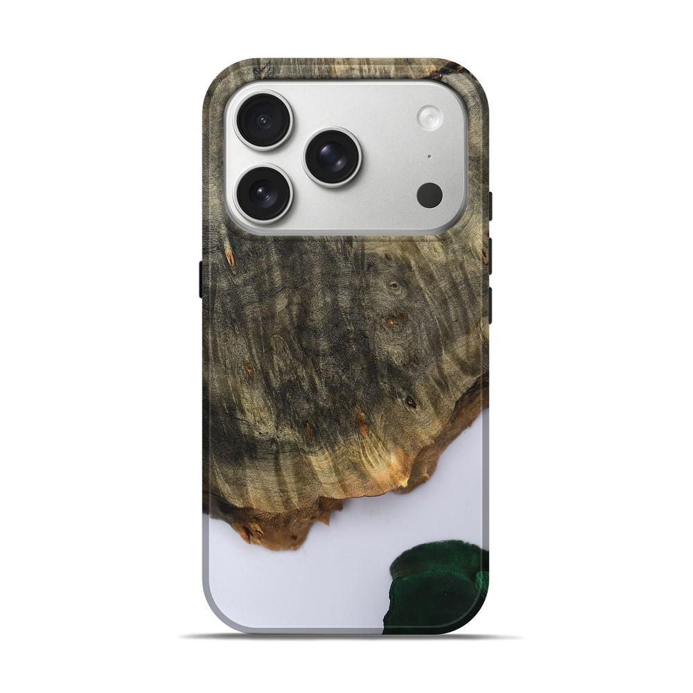 Our Live Edge cases are made from an amazing combination of stabilized wood burl and colored resin. Our stabilization process hardens the wood to protect against cracks and breaks. We do every step of the process at our shop in Northern Indiana. Perfectly fits the iPhone 17 Pro.