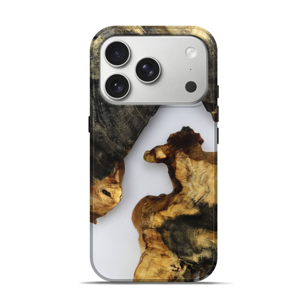 Our Live Edge cases are made from an amazing combination of stabilized wood burl and colored resin. Our stabilization process hardens the wood to protect against cracks and breaks. We do every step of the process at our shop in Northern Indiana. Perfectly fits the iPhone 17 Pro.