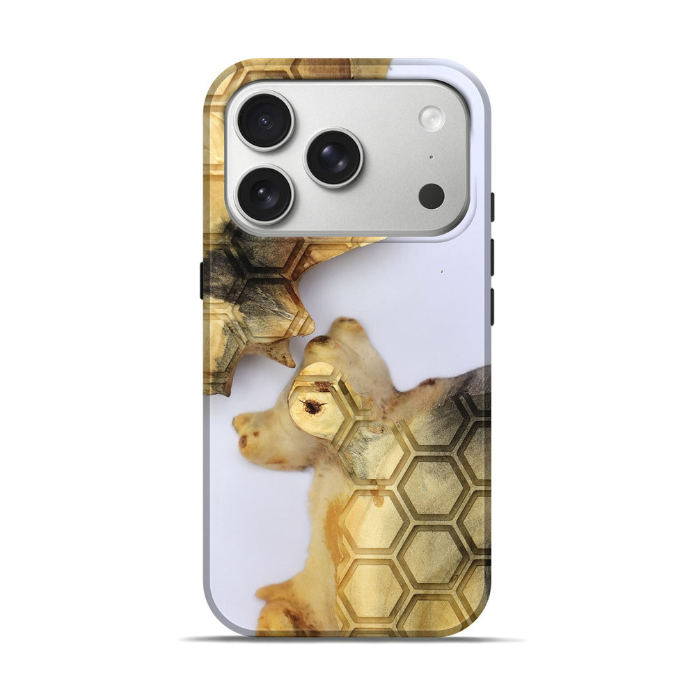 Our Live Edge cases are made from an amazing combination of stabilized wood burl and colored resin. Our stabilization process hardens the wood to protect against cracks and breaks. We do every step of the process at our shop in Northern Indiana. Perfectly fits the iPhone 17 Pro.