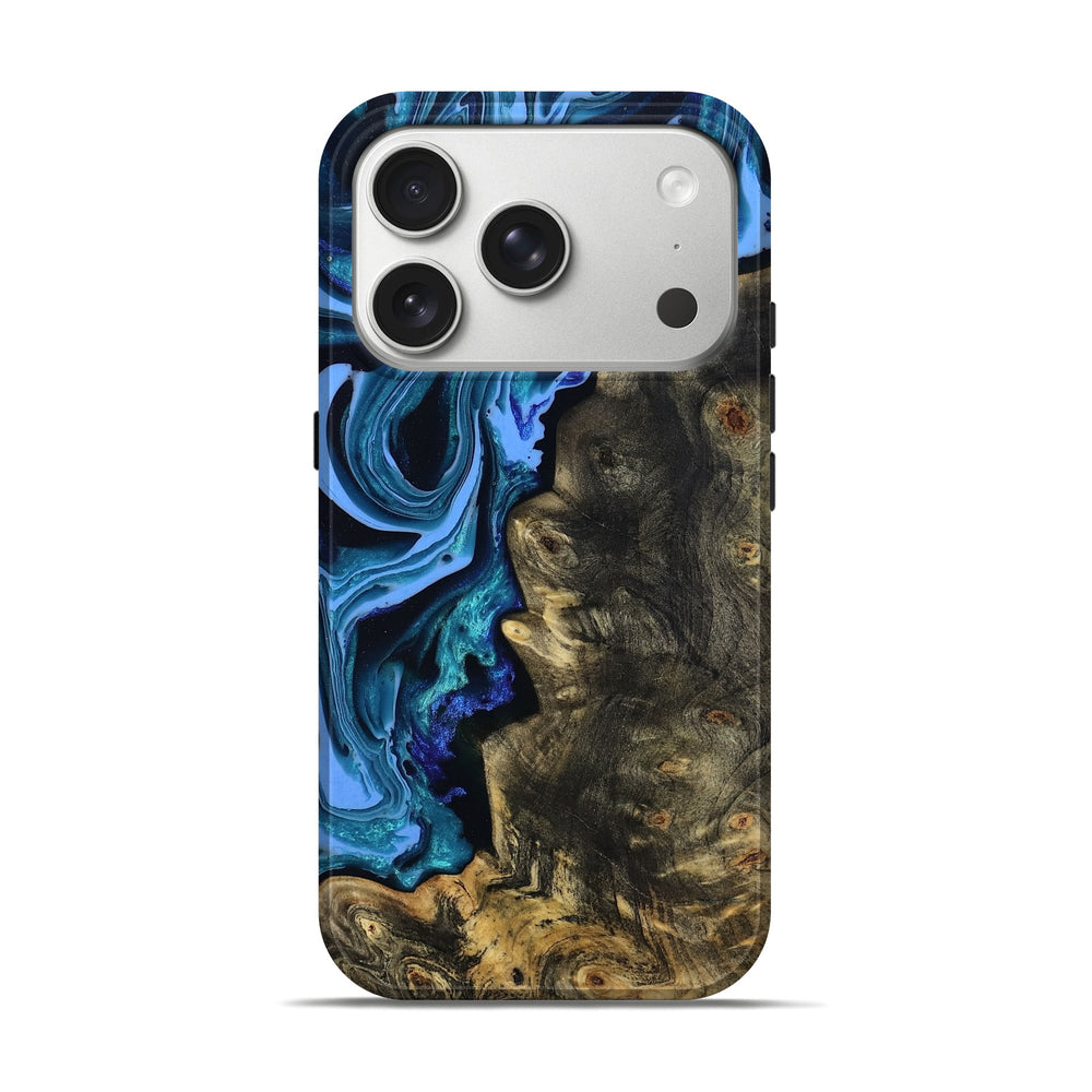 Our Live Edge cases are made from an amazing combination of stabilized wood burl and colored resin. Our stabilization process hardens the wood to protect against cracks and breaks. We do every step of the process at our shop in Northern Indiana. Perfectly fits the iPhone 17 Pro.