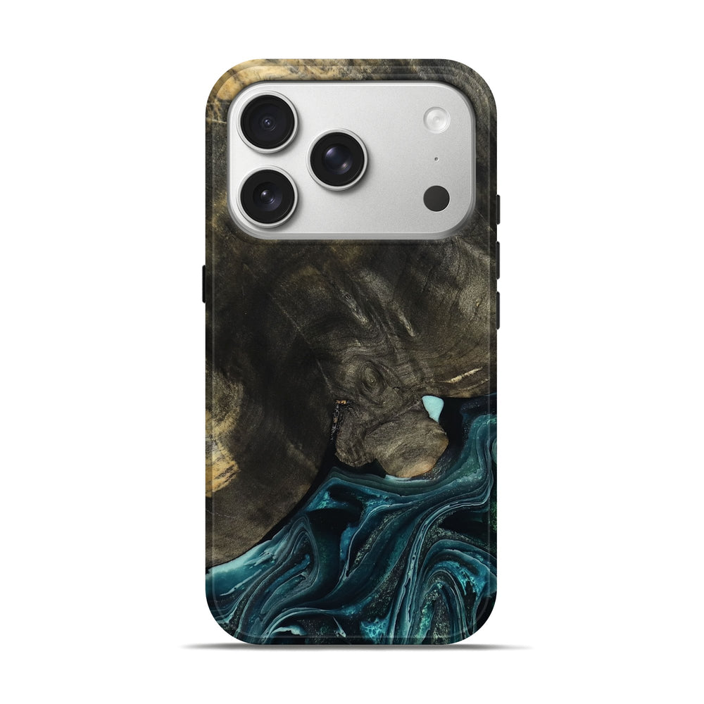 Our Live Edge cases are made from an amazing combination of stabilized wood burl and colored resin. Our stabilization process hardens the wood to protect against cracks and breaks. We do every step of the process at our shop in Northern Indiana. Perfectly fits the iPhone 17 Pro.