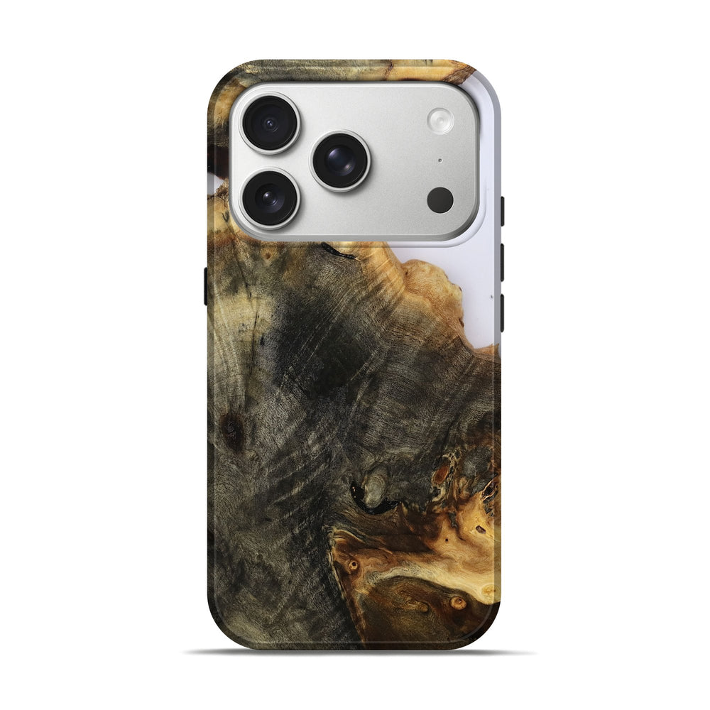 Our Live Edge cases are made from an amazing combination of stabilized wood burl and colored resin. Our stabilization process hardens the wood to protect against cracks and breaks. We do every step of the process at our shop in Northern Indiana. Perfectly fits the iPhone 17 Pro.