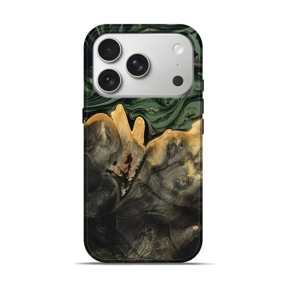 Our Live Edge cases are made from an amazing combination of stabilized wood burl and colored resin. Our stabilization process hardens the wood to protect against cracks and breaks. We do every step of the process at our shop in Northern Indiana. Perfectly fits the iPhone 17 Pro.