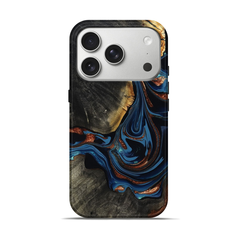 Our Live Edge cases are made from an amazing combination of stabilized wood burl and colored resin. Our stabilization process hardens the wood to protect against cracks and breaks. We do every step of the process at our shop in Northern Indiana. Perfectly fits the iPhone 17 Pro.