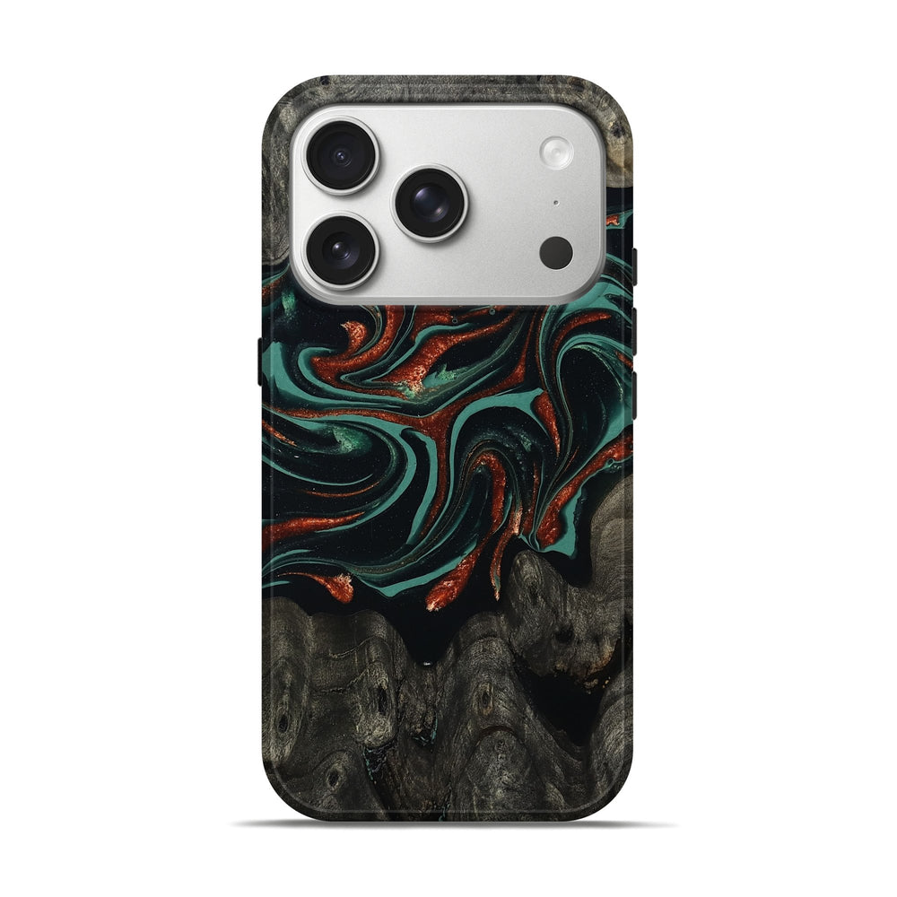 Our Live Edge cases are made from an amazing combination of stabilized wood burl and colored resin. Our stabilization process hardens the wood to protect against cracks and breaks. We do every step of the process at our shop in Northern Indiana. Perfectly fits the iPhone 17 Pro.