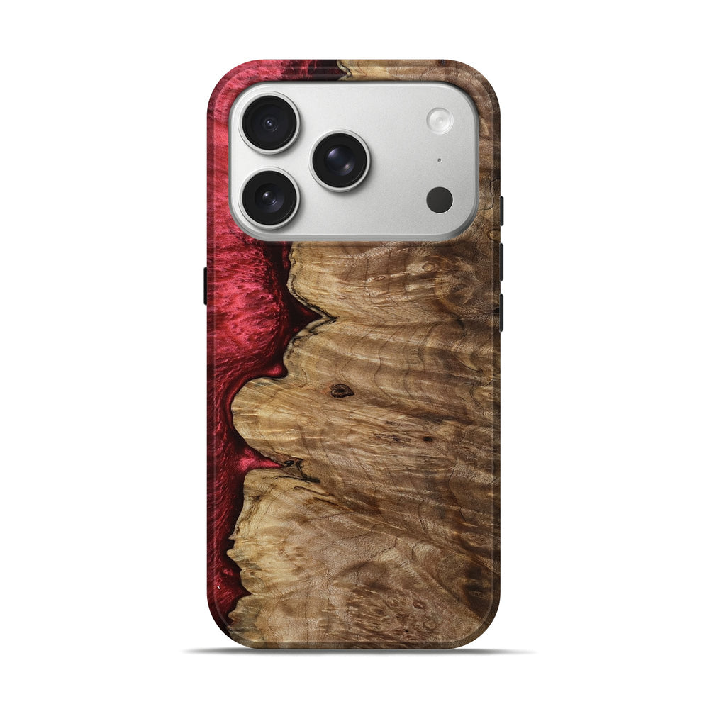 Our Live Edge cases are made from an amazing combination of stabilized wood burl and colored resin. Our stabilization process hardens the wood to protect against cracks and breaks. We do every step of the process at our shop in Northern Indiana. Perfectly fits the iPhone 17 Pro.