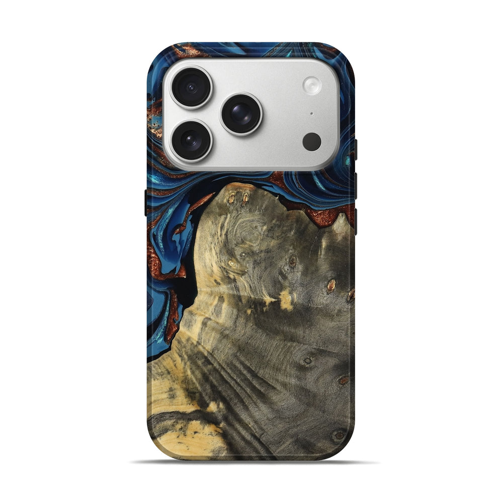 Our Live Edge cases are made from an amazing combination of stabilized wood burl and colored resin. Our stabilization process hardens the wood to protect against cracks and breaks. We do every step of the process at our shop in Northern Indiana. Perfectly fits the iPhone 17 Pro.